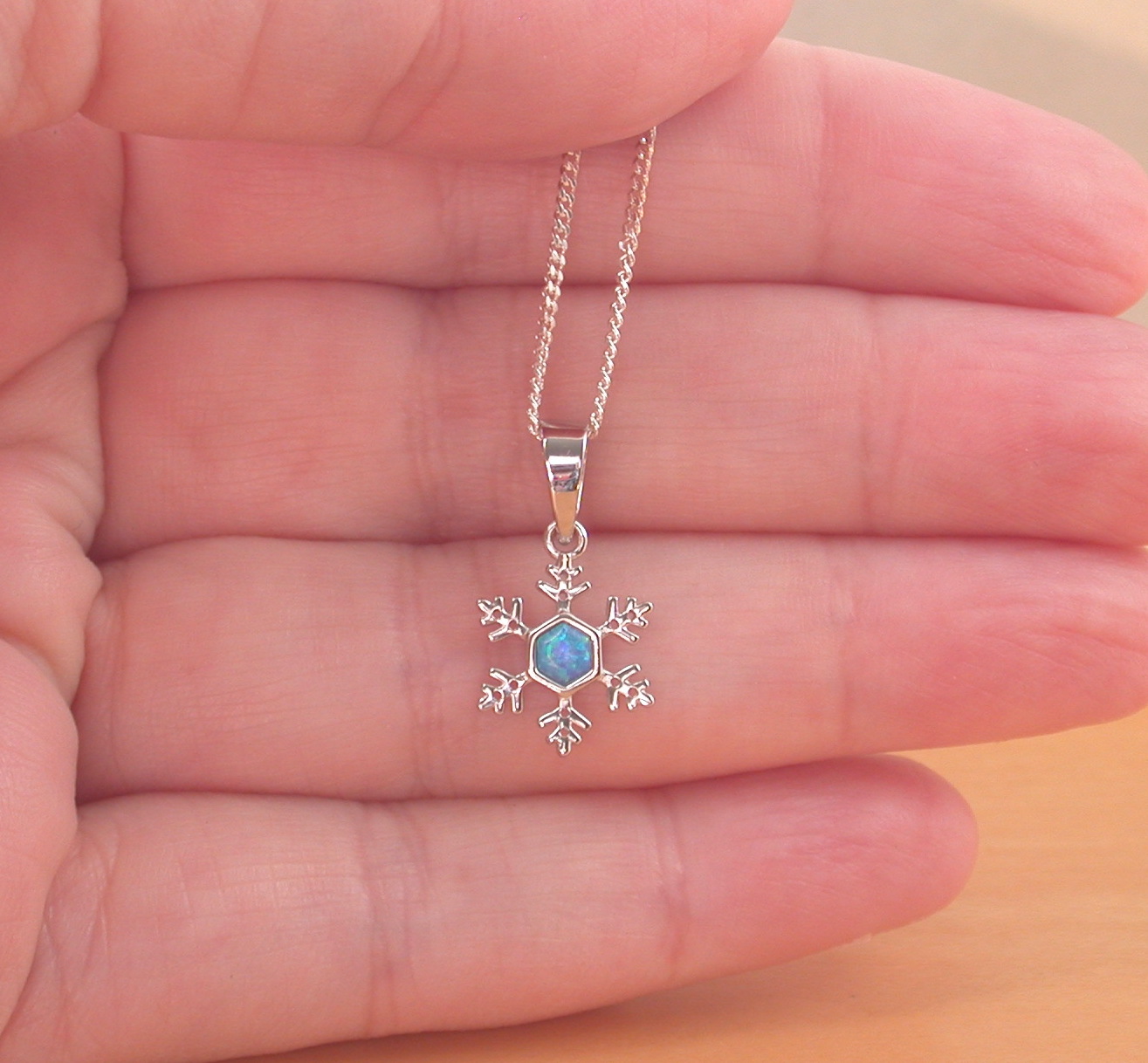BOXED GIFT/Sterling Silver Blue Opal Snowflake Pendant & Chain/Snowflake Necklace/Snowflake Jewellery/Snowflake Jewelry/Opal Jewellery/UK