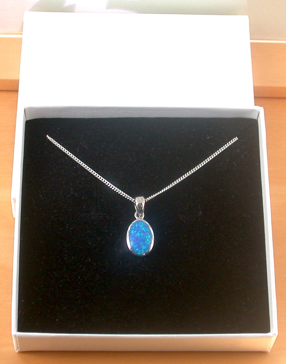 BOXED GIFT/Sterling Silver Blue Opal Oval Pendant & 18" Chain/Blue Opal Necklace/Blue Opal Jewellery/October Birthstone/UK