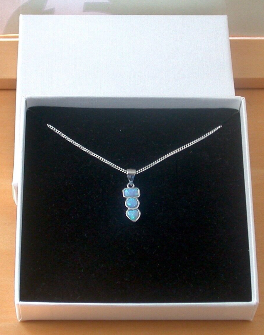 BOXED GIFT/Sterling Silver Blue Opal Rectangle Pendant & Chain/Blue Opal Necklace/Opal Necklace/Opal Jewellery/October Birthstone/UK