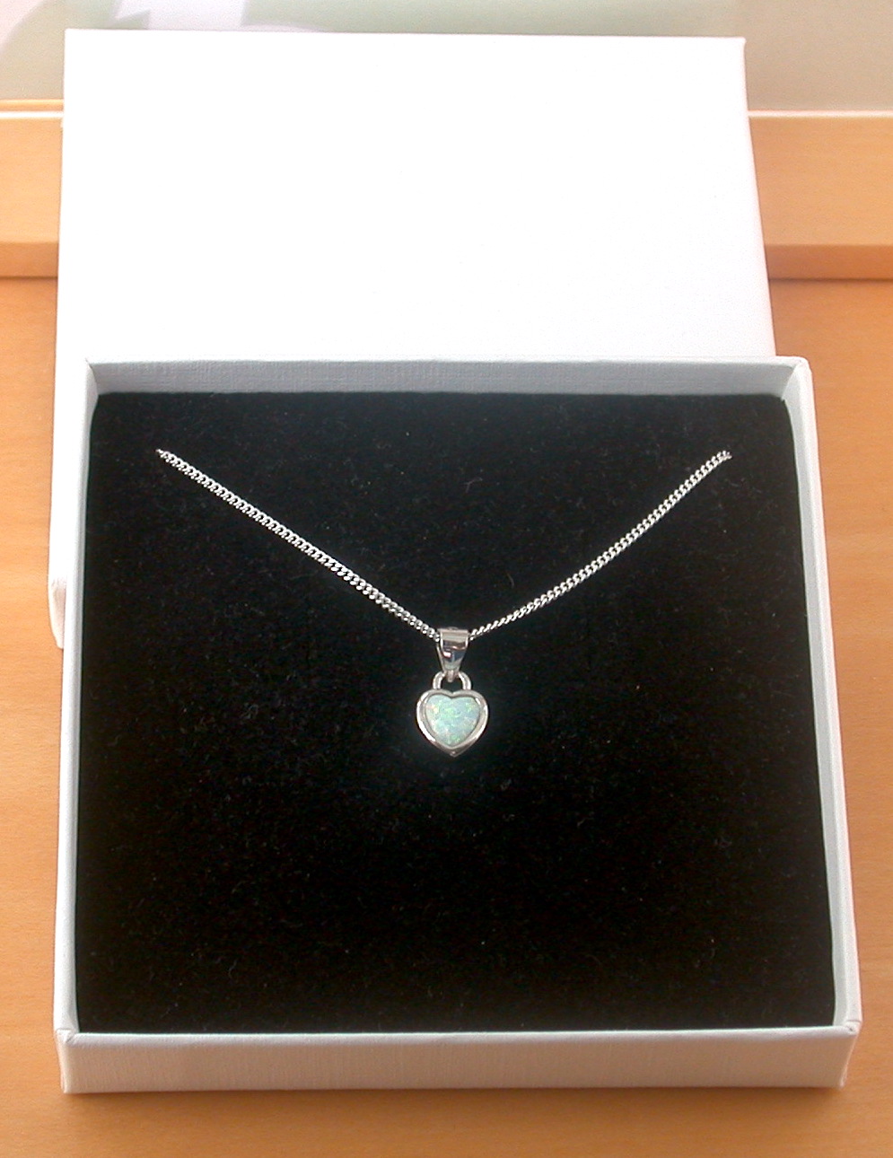 BOXED GIFT/Sterling Silver White Opal Heart Pendant & Chain/Opal Necklace/Opal Jewellery/Opal Jewelry/Opal Heart Pendant/UK
