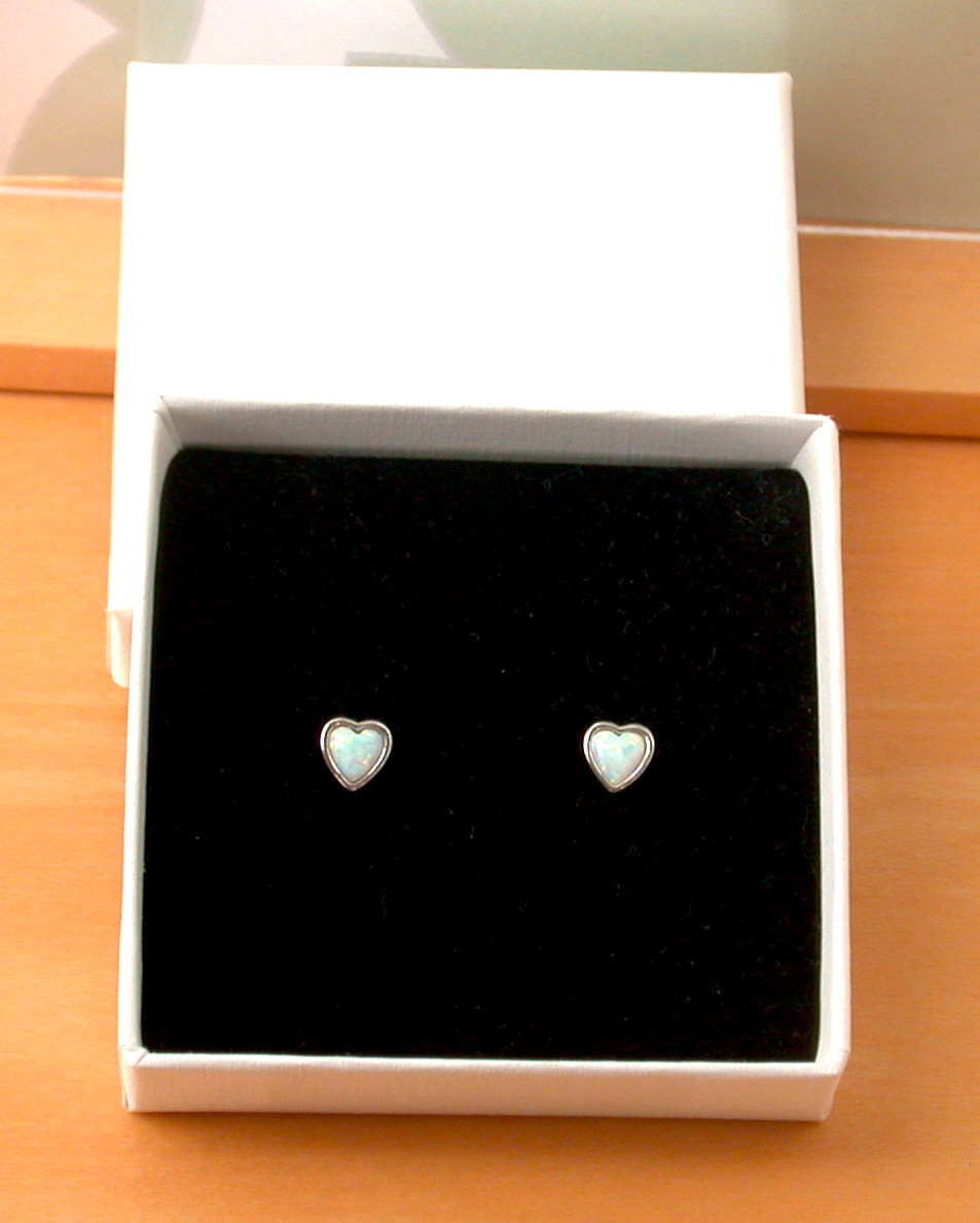 BOXED GIFT/Sterling Silver White Opal Heart Stud Earrings/Opal Heart Earrings/Opal Jewellery/Opal Jewelry/Silver Heart Earrings/October Birthstone/UK