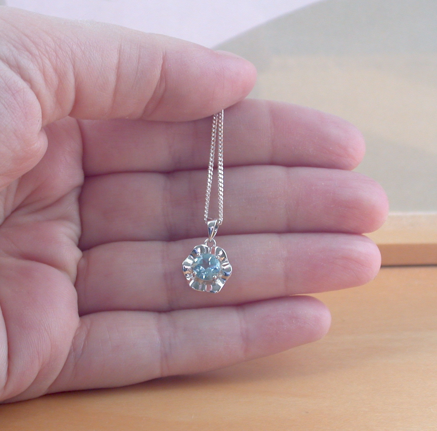 BOXED GIFT/Sterling Silver Blue Topaz Flower Pendant & Chain/Topaz Necklace/Blue Topaz Necklace/Topaz jewellery/UK