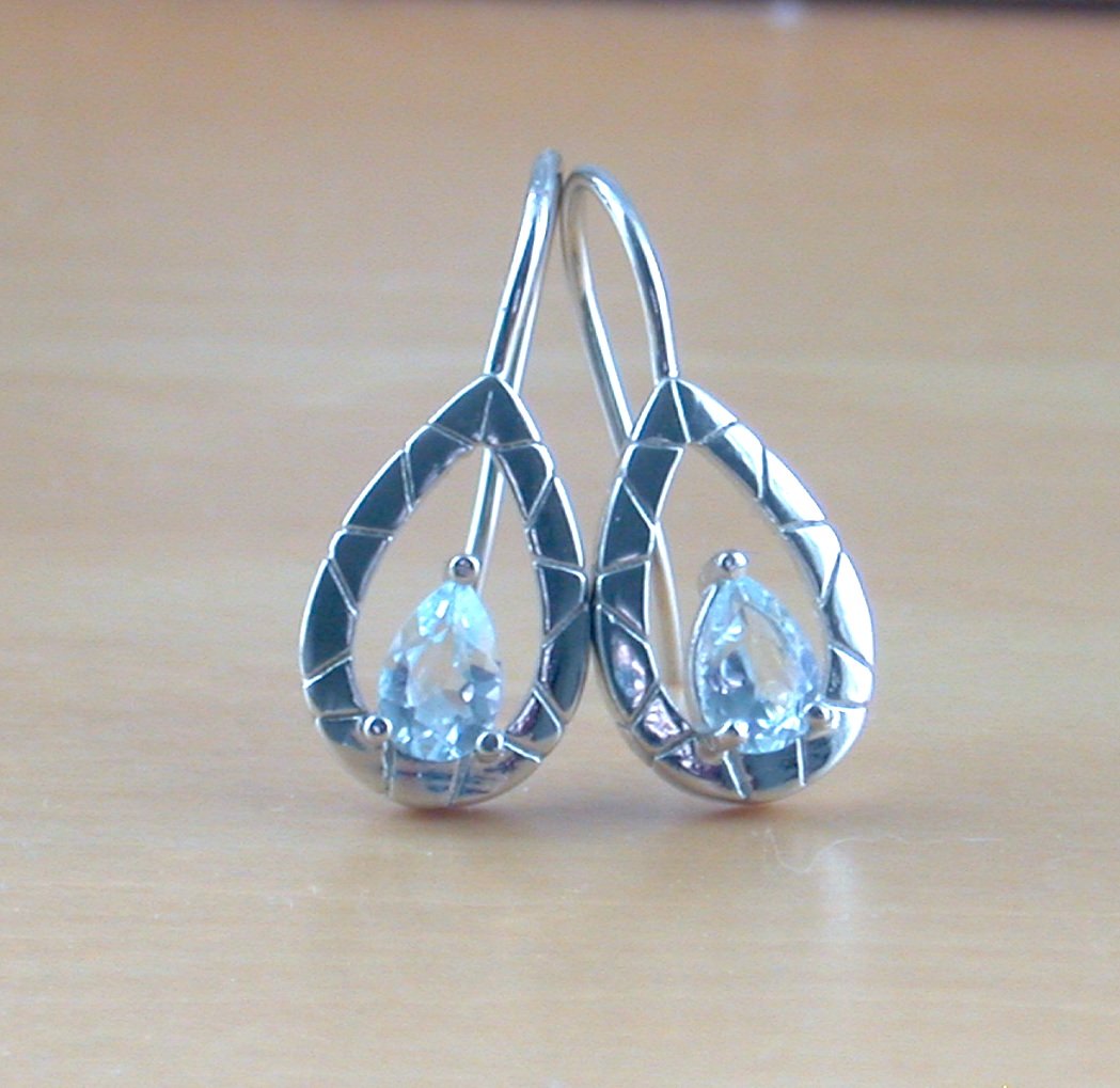BOXED GIFT/Sterling Silver Blue Topaz Teardrop Earrings/Topaz Hook Earrings/Topaz Jewellery/Topaz Jewelry/Topaz Earrings/UK