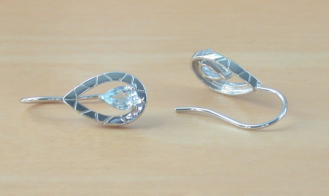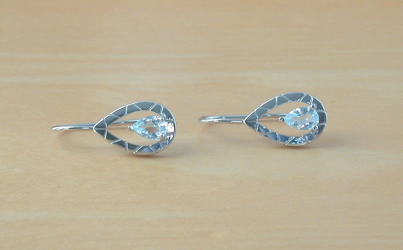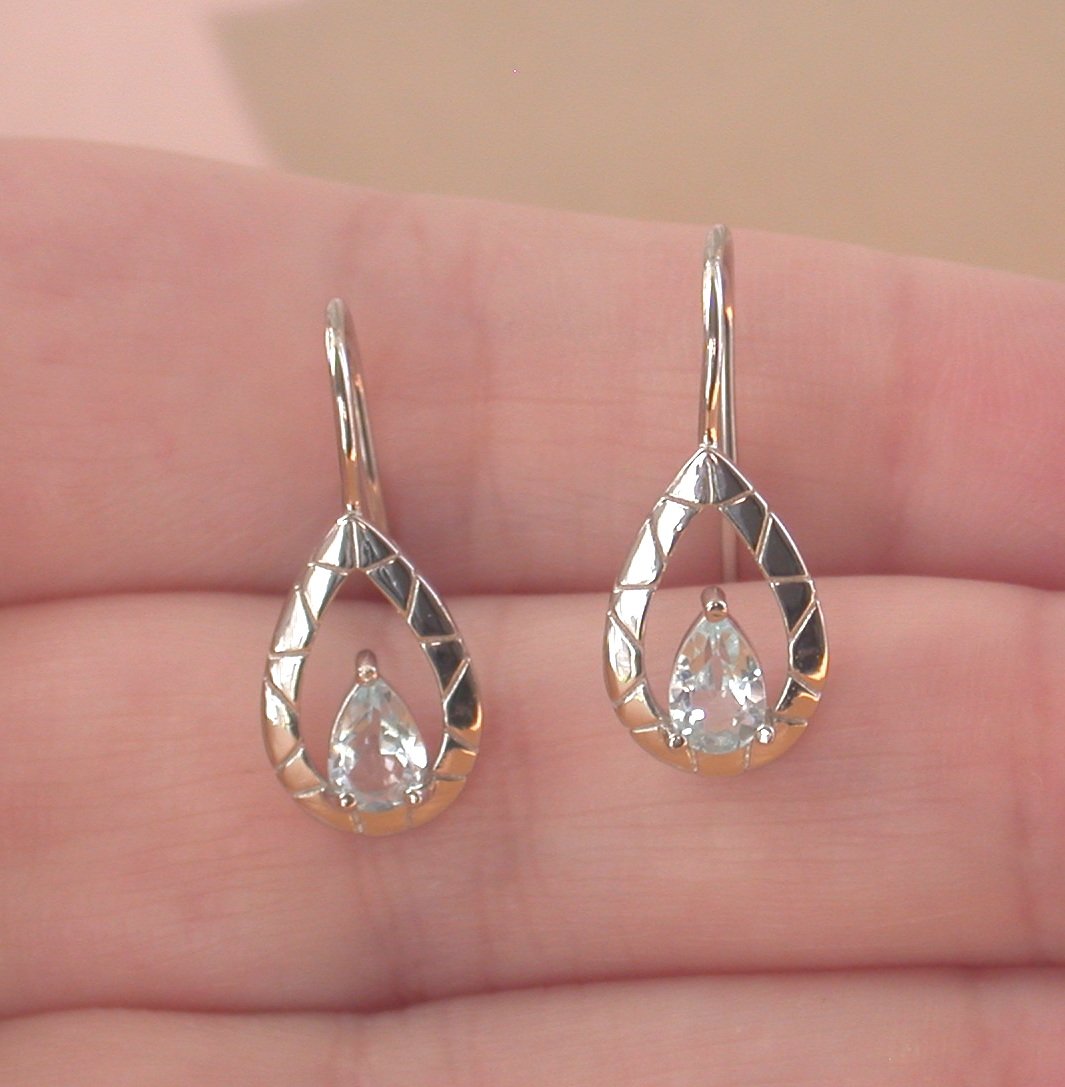 Sterling silver teardrop hook earrings with genuine blue topaz gemstone. These earrings measure 14mm length x 10mm width. The topaz oval gemstone measures 7mm x 4mm. Stamped 925. Topaz is the birthstone for November.