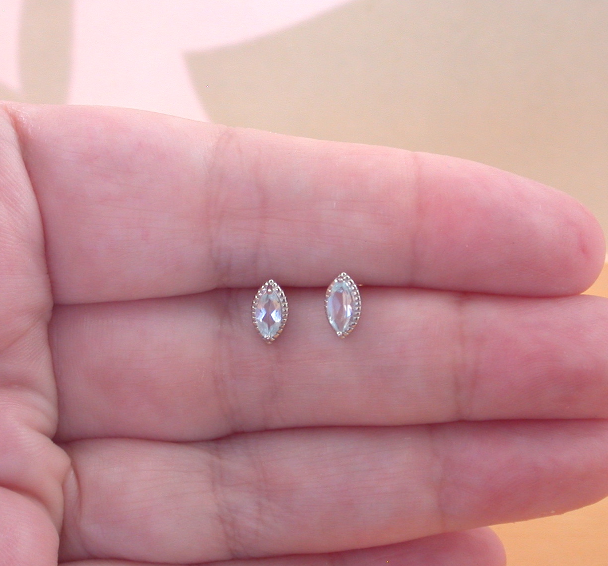 Sterling silver genuine blue topaz gemstone marquise stud earrings. These earring measures 8mm height x 3mm width. Stamped 925. Topaz is the birthstone for November.