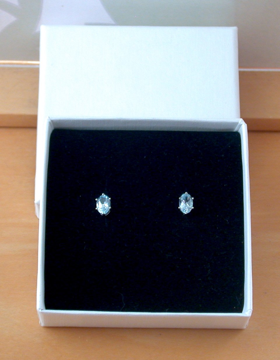 BOXED GIFT/Sterling Silver Blue Topaz Oval Stud Earrings/Topaz Earrings/Gemstone Earrings/Topaz Jewellery/Topaz Jewelry/UK