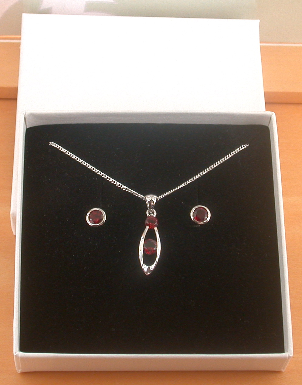 BOXED GIFT SET/Garnet Pendant & 18" Silver Chain/Garnet Necklace/Red Garnet Jewellery/Garnet Jewelry/Garnet Jewelery/Garnet Earrings/UK