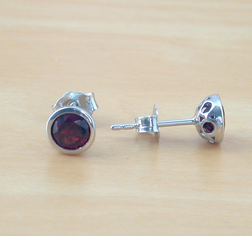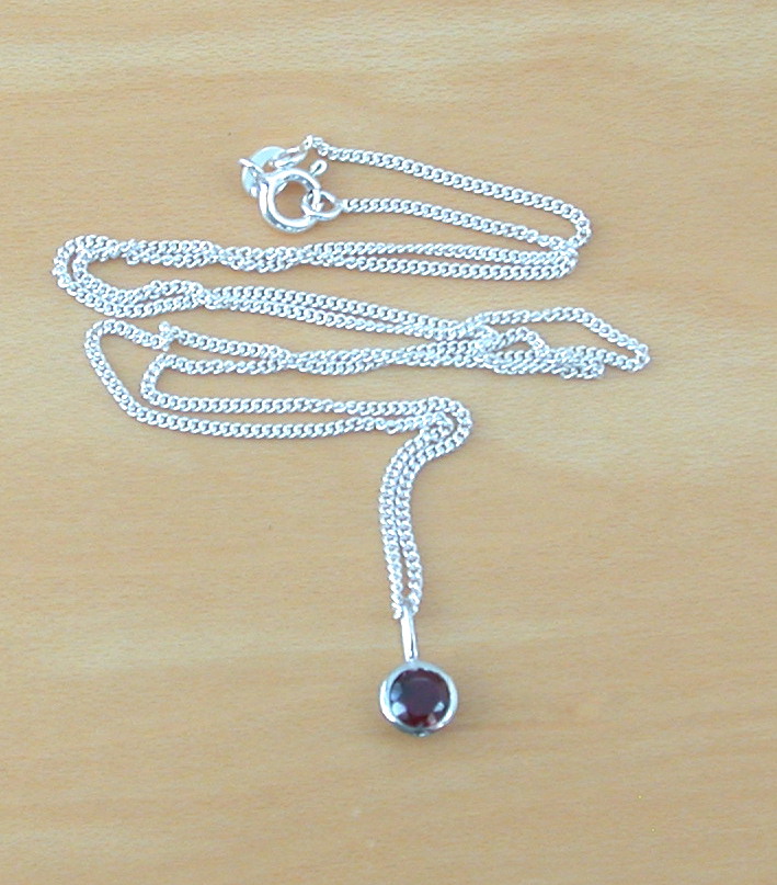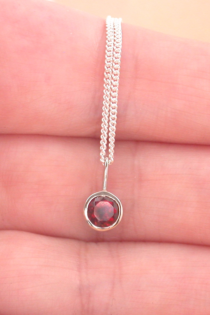 Sterling silver, circle design pendant set with garnet gemstones. This pendant measures 5mm length x 5mm width. The garnet gemstone measures 4mm. his pendant will come complete with an 18 inch sterling silver curb chain (16, 20 and 22 inch chains now available, please leave message through checkout). The garnet stud earrings measure 5mm x 5mm. Stamped 925. Garnet is the birthstone for January.