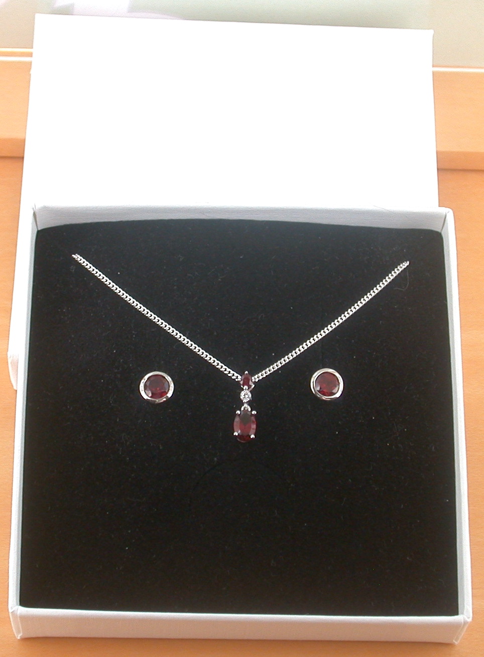 BOXED GIFT SET/Sterling Silver Garnet & Cz Pendant & Chain/Garnet Necklace/Garnet Jewellery/Garnet Jewelry/Garnet Earrings/UK