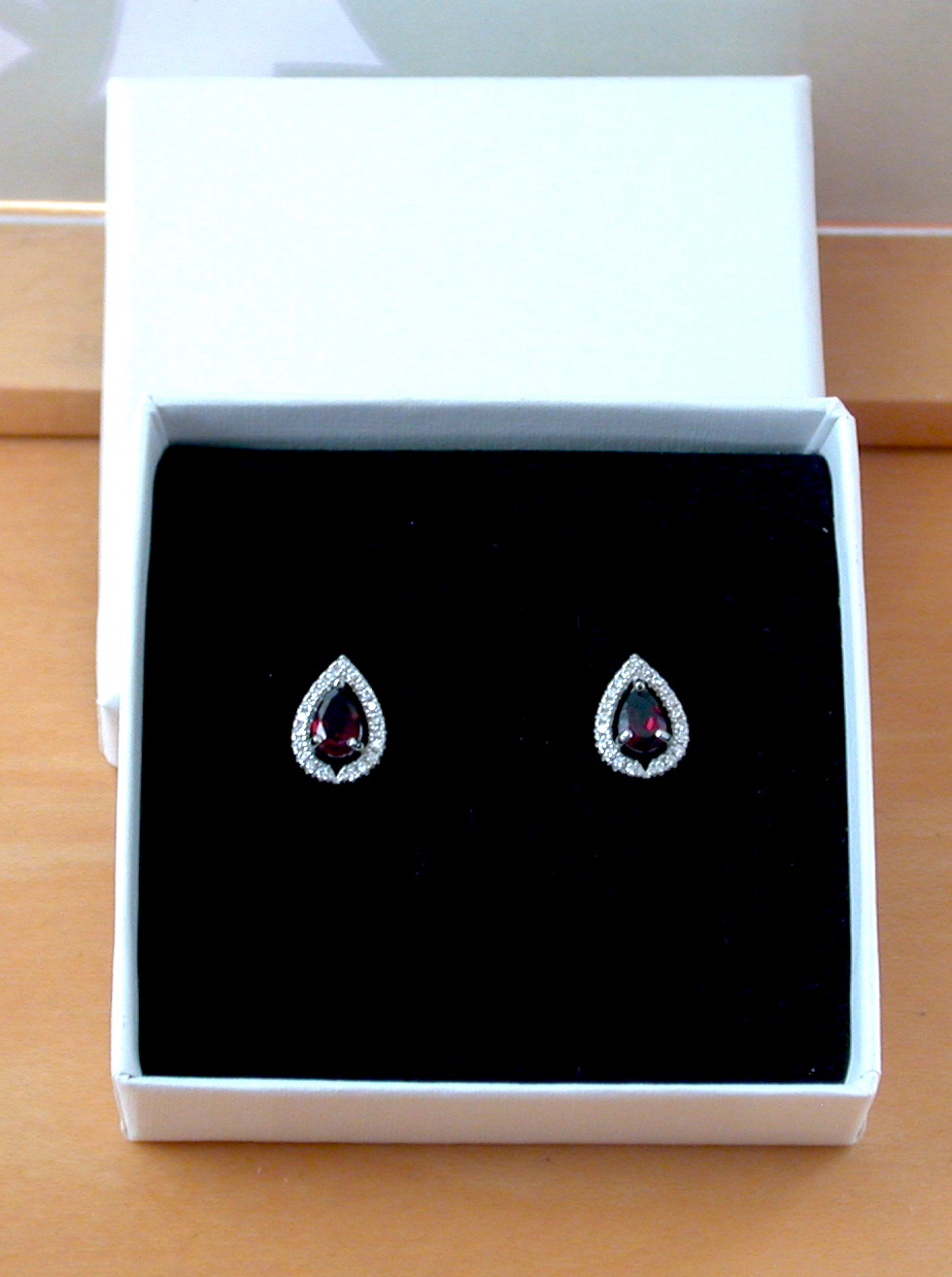 BOXED GIFT/Sterling Silver Garnet & Cz Stud Earrings/Sterling Silver Garnet Earrings UK/Garnet Earrings/Garnet Jewellery/Garnet Jewelry/UK