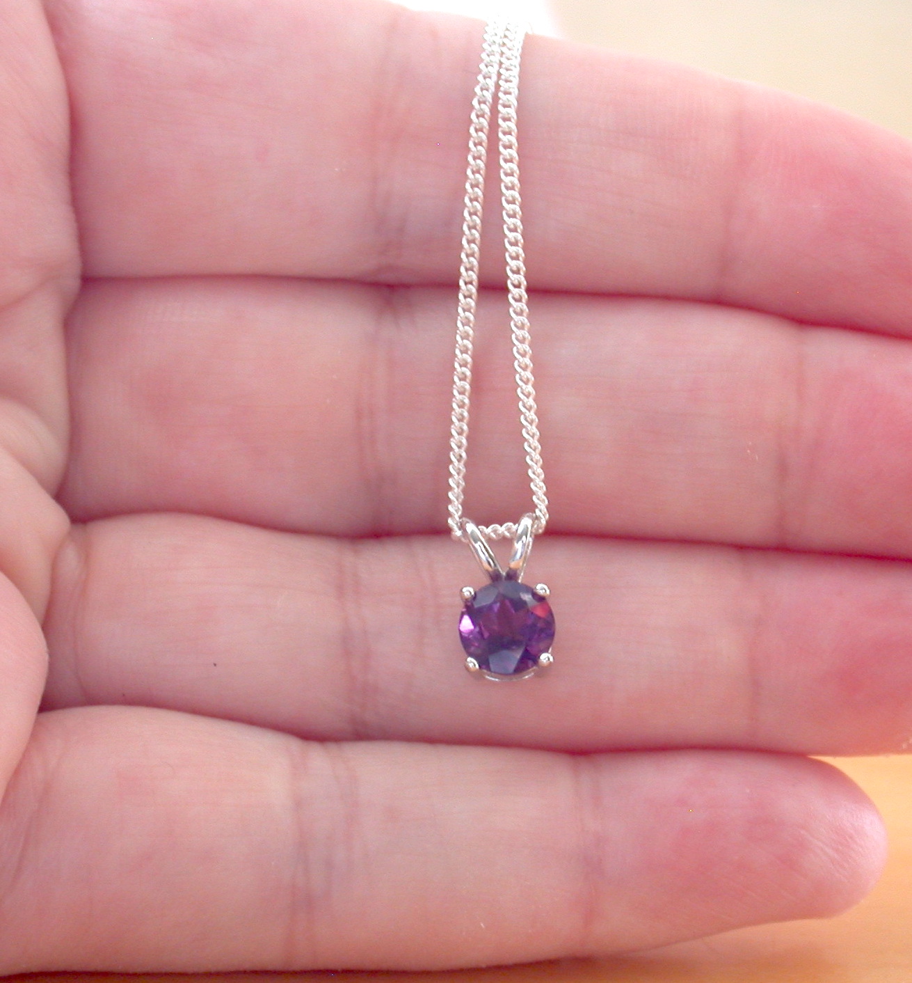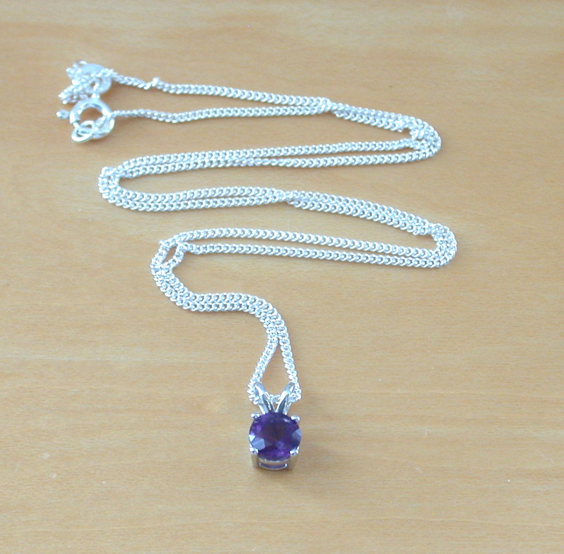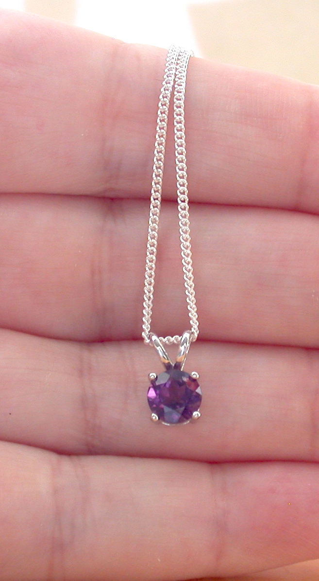BOXED GIFT/Amethyst Solitaire Pendant & 18" Silver Chain/Amethyst Necklace/Amethyst Jewellery/Amethyst Jewelery/February Birthstone/UK